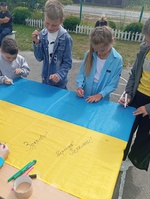 Напередодні Дня прапора школярі розписали синьо-жовтий стяг, наповнивши його побажаннями та словами підтримки для наших воїнів. Цей прапор, зігрітий дитячими серцями, обов’язково передадуть бійцям ЗСУ.